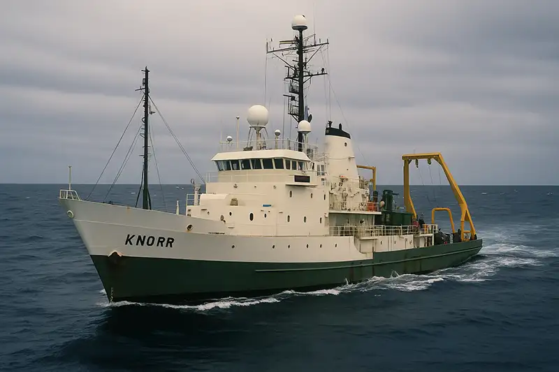 Launched in 1968, the 279-foot research vessel Knorr was built for endurance and precision. Operated by Woods Hole Oceanographic Institution, she was capable of carrying scientists for up to eight weeks at a time and could cover vast distances. Over her 44-year career she logged more than one million miles, contributing to countless discoveries: from hydrothermal vents to mid-ocean ridges. Her design was practical rather than glamorous, with large deck space, heavy-duty winches, and excellent navigational systems that made her perfect for deploying deep-sea exploration equipment. In 2014, Knorr was retired and later transferred to the Mexican Navy. Yet, of all her missions, it was the Titanic expedition of 1985 that cemented her place in history, despite the strange secrecy behind it.